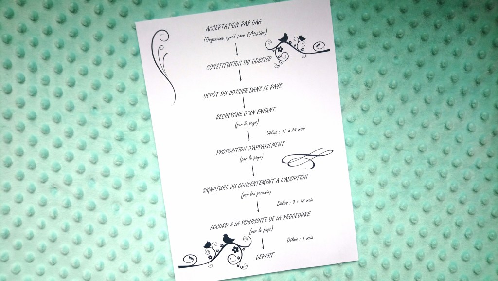 Ça malheureusement, ça ne dépend pas de nous !! Une fois que le pays a effectué toutes les démarches de son côté, nous recevons alors l’APP (Accord à la Poursuite de la Procédure). C’est le sésame qui nous indique que tout est ok et qu’il faut être prêt à partir. Et quand je dis prêt, c’est prêt : le pays donne une date à laquelle il faudra que nous soyons là-bas, et impossible de la décaler (en tout cas pas plus de 2 jours). Cela peut être 1 mois après l’Accord à la Poursuite de la Procédure… comme moins de 15 jours.