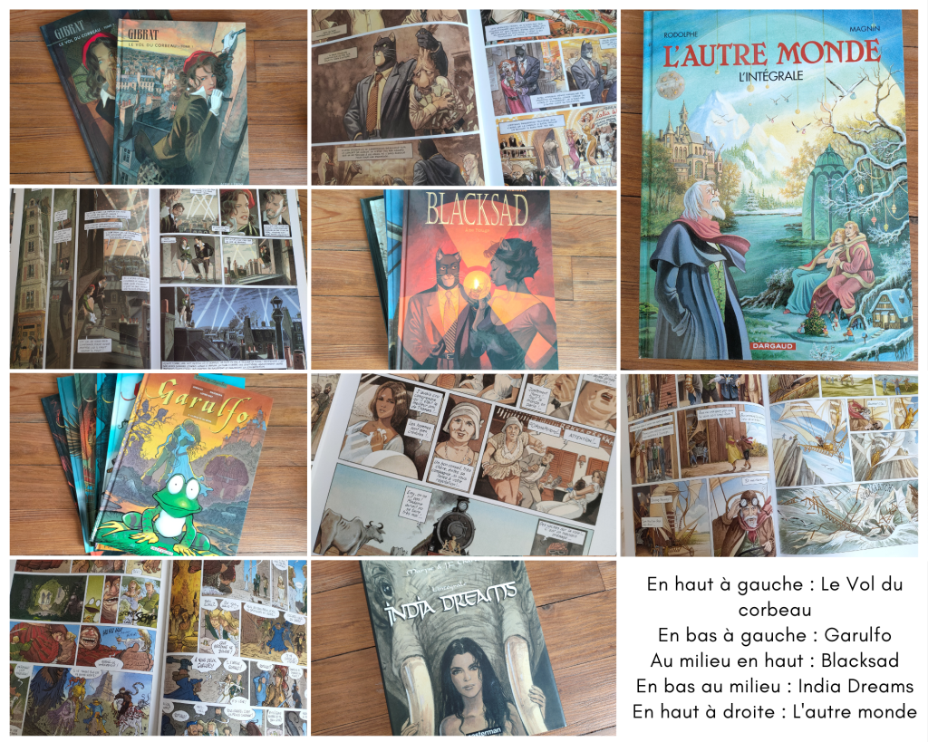 Je suis fan de BD, je ne sais pas combien j’en ai mais beaucoup trop pour les rayonnages de ma bibliothèque. Je me suis d’ailleurs calmée sur les achats, mais j’en emprunte beaucoup à la bibliothèque municipale. J’ai découvert Gibrat avec le Vol du corbeau et s’est devenu un de mes auteurs favoris. Je viens d’ailleurs de finir le tome 6 de la série Mattéo que je ne peux que conseiller. Mon deuxième auteur fétiche est Emmanuel Lepage, et là aussi je conseille son dernier ouvrage, Cache-cache bâton, que j’ai chroniqué sur mon blog. Et en BD enfants, pour le moment c’est Yakari qui tiens la tête du palmarès de mon fils de 7 ans.