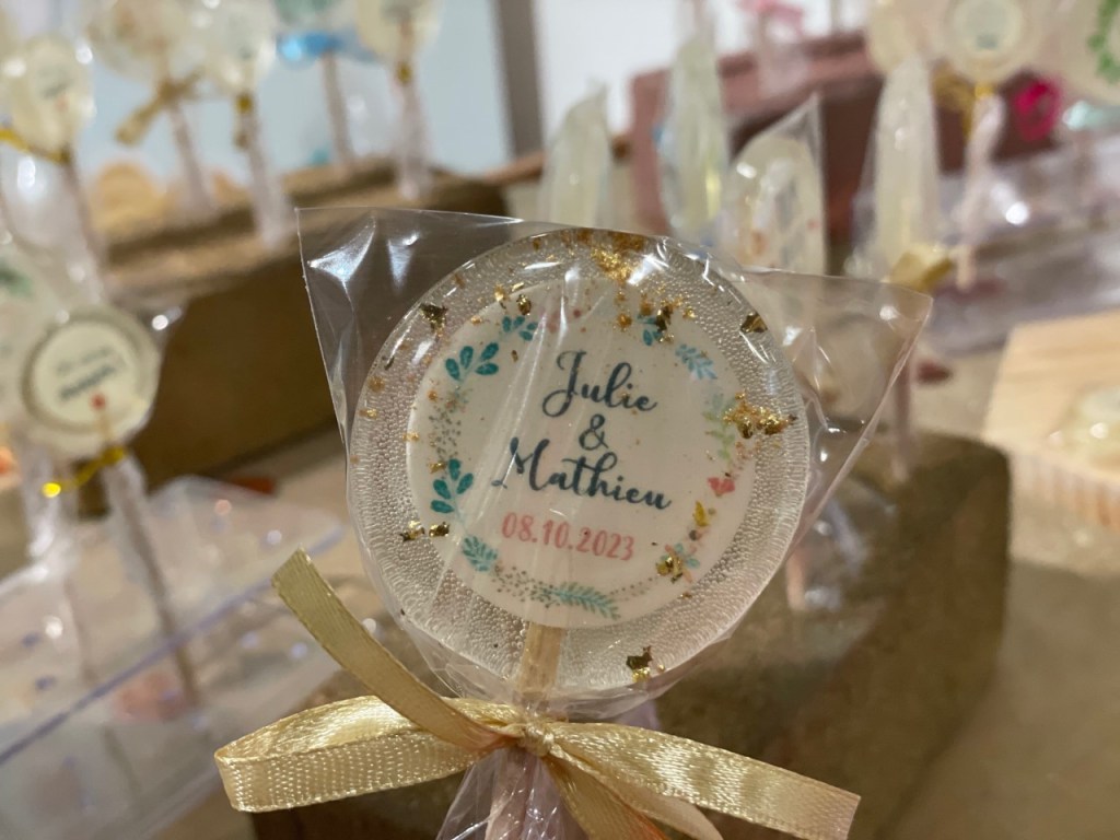 Les Sucettes Pipelettes, c’est une micro-entreprise de sucettes que l’on peut personnaliser sur mesure. Elles servent aussi bien de goodies pour les professionnels (logos, QR-CODE…) que pour tous les événements particuliers (mariages, anniversaires, baptêmes, baby-shower…).Est-ce que c’est pas la méga classe, ça ? Hyper original et personnalisable, c’est juste parfait ! Ophélie fabrique les sucettes à la main (elle a été formée à la confiserie), qu’elle propose à 4 arômes naturels différents : fraise, citron, passion et myrtille. Elle insère dans celles-ci le visuel de ton choix (ou le texte !) imprimé à l’encre comestible ! Je valide aussi évidemment le bâton en bois de hêtre, bien plus écologique que les bâtonnets en plastique (c’est encore légal ça ?) et plus confortable en bouche que les bâtons en papier qui deviennent tous mous une fois mâchouillés.