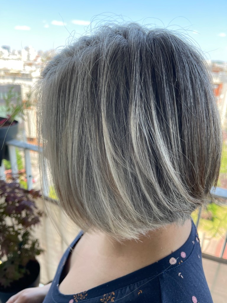 Après plus d’une année, je suis ravie de mon choix. J’adore cette couleur qui illumine mon visage et me va à la perfection. La plupart des gens pensent qu’il s’agit d’une couleur car elle est très nuancée et brillante. Je m’autorise des coiffures que je n’aurais jamais réalisées avant car elles mettaient trop en avant mes racines. Je ne reçois que des compliments et cela booste vraiment la confiance en soi. Cela me donne ce petit quelque chose en plus qui me distingue des autres.