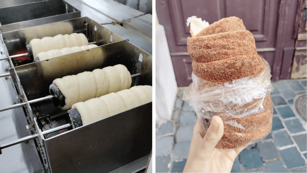 Dans les rues flotte, en permanence, une odeur de sucre et de cannelle. Les fautifs ? Les Kürtöskalács ou gâteaux cheminée qui sont d’énormes brioches, à la fois fondantes et croustillantes, cuites sur des gros rouleaux et trempées dans un mélange de sucre et de cannelle (et qui sont donc devenus ma nouvelle passion dans la vie). Pour le reste de la gastronomie, nous avons délaissé le goulash et nous sommes rabattus vers des choses on-ne-peut-plus classiques et pas spécialement hongroises…