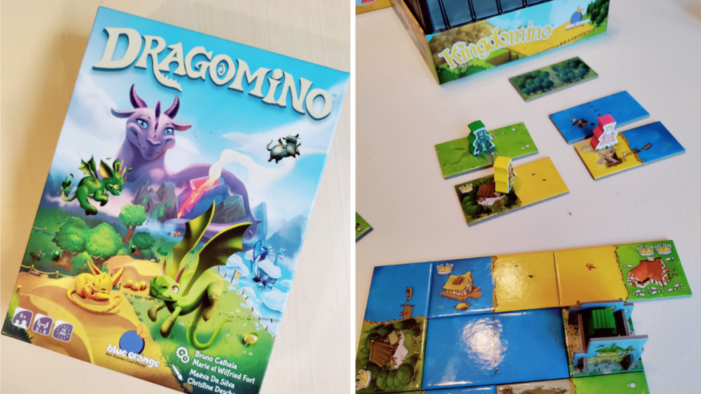 Dragomino est mon jeu préféré pour jouer avec les petits sans s’ennuyer. On choisit ses dominos pour essayer de regrouper des territoires et collecter ainsi des œufs de dragons. L’objectif est d’avoir le maximum de bébés dragons à la fin de la partie Mais attention, parfois les œufs ont déjà éclot ! Un mélange de stratégie et de hasard : le combo gagnant. C’est parfait pour les enfants en maternelle puis à partir de 6/7 ans ils peuvent passer à Kingdomino : une version toujours à base de dominos et de territoires, plus complexe mais tout aussi sympathique et addictive !