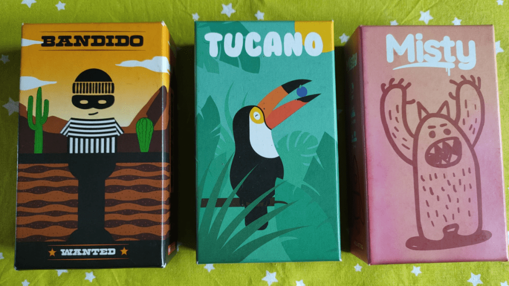 Dans Tucano, il faut faire la meilleure salade de fruits et pour cela récupérer les meilleurs fruits. Chacun a une valeur, certains sont bons si on en a 1 ou 2 mais rendent la salade moins bonne s’il y en a plus. C’est très bien fait, très simple à comprendre là aussi. (Bémol : le comptage des points à la fin de la partie est fastidieux.)