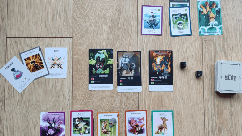 « Préparez vous à faire un carnage »… tout est dit ! Here to slay est un jeu de cartes de 2 à 6 joueurs à partir de 6/7. Chez nous c’est LE jeu de cartes qui fait fureur en ce moment et on enchaîne les parties.