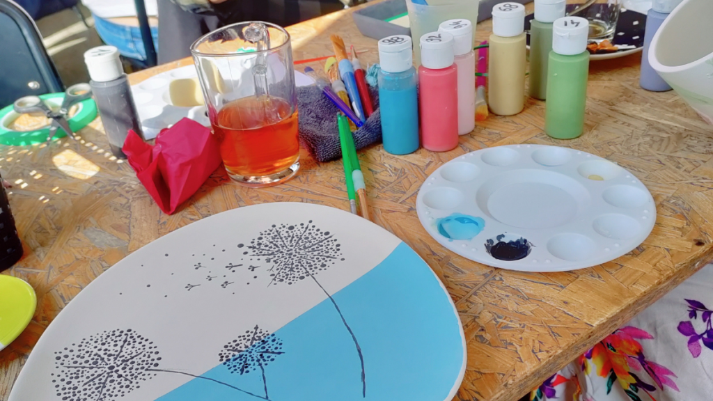 La responsable du lieu commence par nous expliquer la méthode, le matériel et les différentes techniques de peinture et ensuite à nous de jouer ! On a passé une après-midi hyper agréable à peindre, manger et papoter : le combo parfait. En plus il faisait beau et on a pu s’installer sur la terrasse c’était génial ! Une fois nos œuvres terminées, on les laisse au café pour la cuisson et deux semaines plus tard on a pu aller récupérer nos œuvre, non sans fierté !