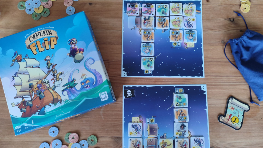 On a testé Capitaine Flip (Pirlouit l’a reçu à Noël, suite à la recommandation de Albertine) et je valide à 100% !! Les parties sont courtes et dynamiques, le fait de pouvoir changer le plateau permet de varier les stratégies.
