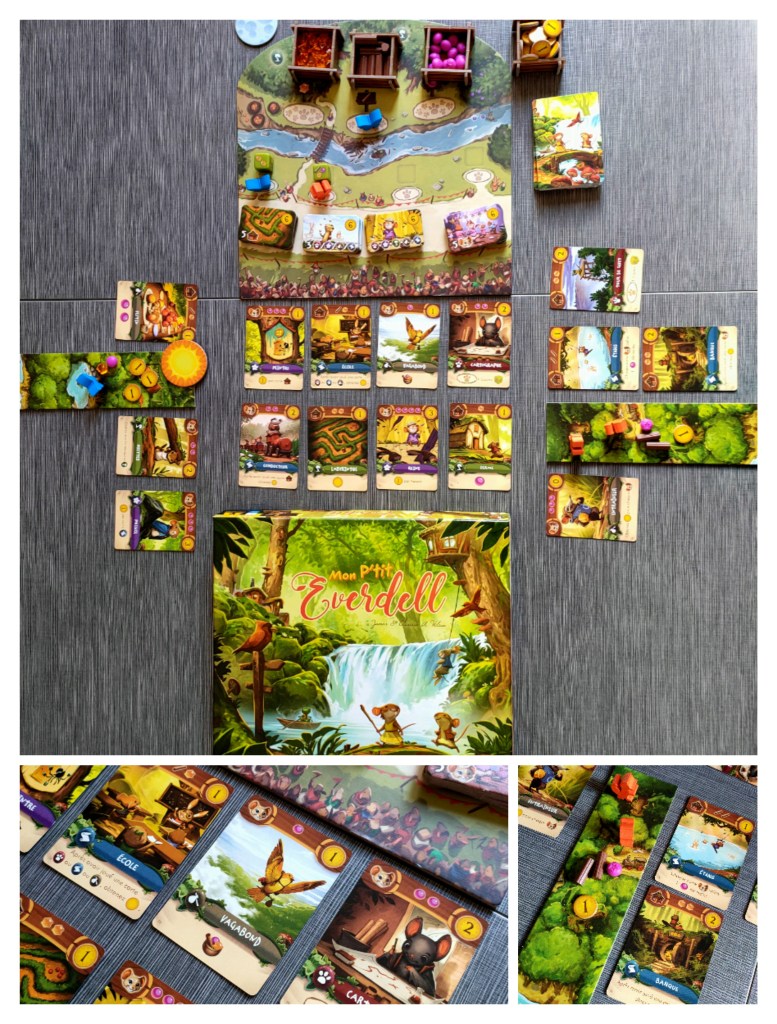 J’ai appris ultérieurement qu’il s’agit en fait de l’adaptation pour enfants de Everdell. Mais une version pour enfant qui se joue avec beaucoup de plaisir même par les adultes ! C’est un de nos must have. Et maintenant que Pirlouit a bien intégré les règles, il se fait un plaisir de nous battre presque à chaque fois !