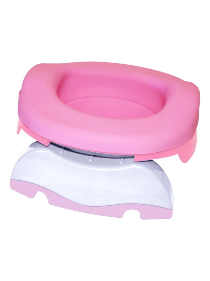 - un pot/adaptateur de toilettes pliable. Notre Poupette est assez vite angoissée des toilettes – ça nous a valu quelques colères d’ailleurs, quand l’angoisse était trop forte et qu’elle ne voulait plus y aller. La référence : Potette. Ce truc nous sert encore à 100% pour des sorties, même dans la famille etc, vraiment un achat utile.