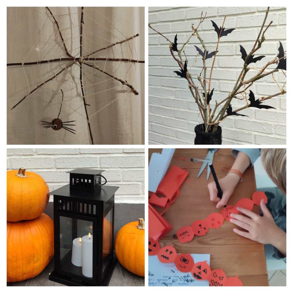 - un arbre à chauve-souris avec des branches mortes, une guirlande led et des petits motifs découpés dans du carton puis collés sur les branches ;