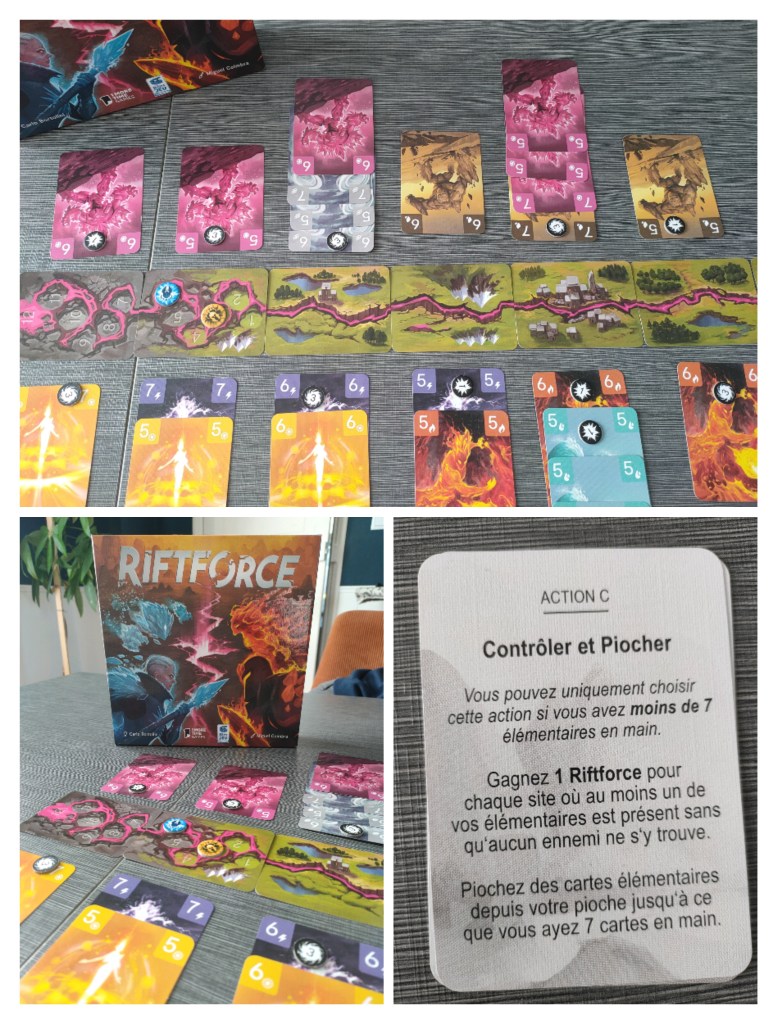 J’avoue que j’ai un attachement particulier pour ce jeu. Je l’ai acheté en prévision du voyage pour aller chercher Pirlouit. À l’époque, nous ne savions pas s’il y aurait une quarantaine et si c’était le cas je voulais emporter un jeu qui réunisse plusieurs critères : compact à transporter (la boîte est grande mais si on ne prend que les éléments c’est tout petit car il n’y a que des cartes et quelques petits jetons), pour 2 joueurs, complexe et avec une bonne rejouabilité mais avec des parties qui ne s’éternisent pas. Rift force conjugue tout ça.