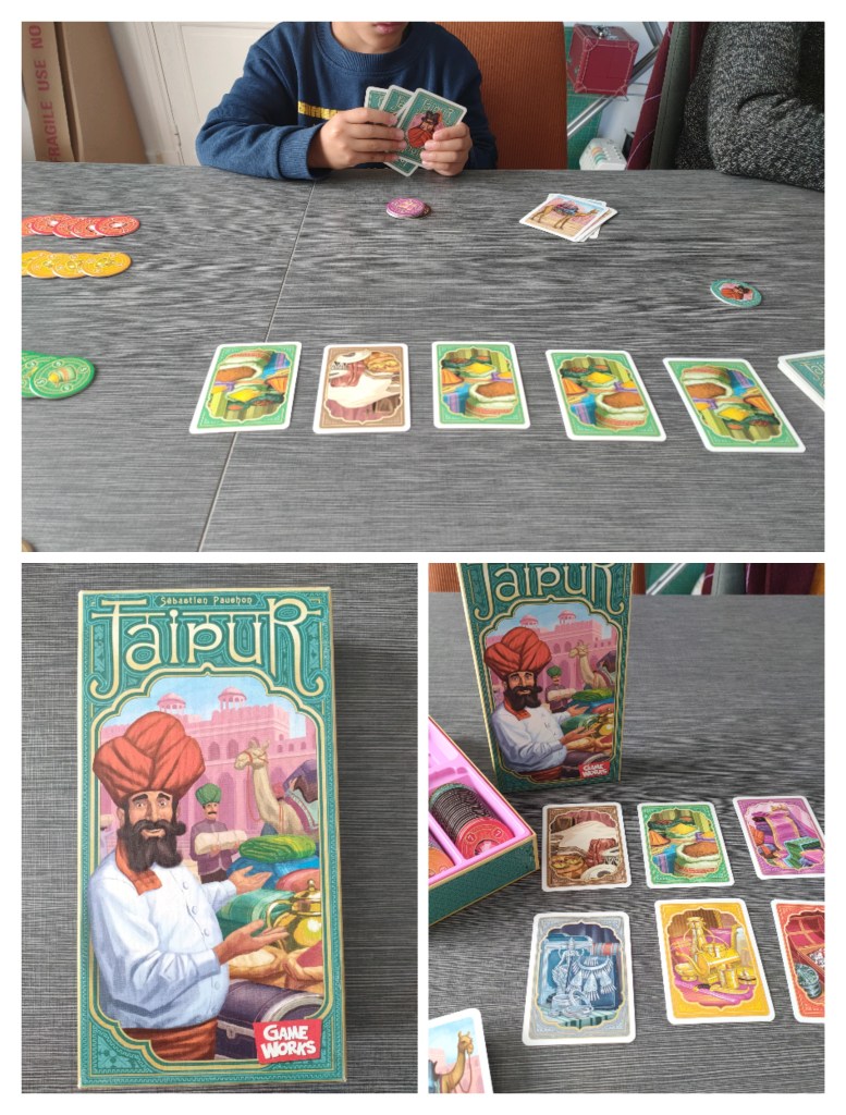 Jaipur est l’un des plus anciens jeux que nous avons à la maison. On n’y jouait plus depuis très longtemps car il ne plaît pas trop à M’ Chéridamour mais Schtroumpfette et Pirlouit aiment beaucoup ! Le jeu est noté à partir de 12 ans dans ma version, 10 ans dans la réédition mais est plus qu’accessible dès 8 ans.