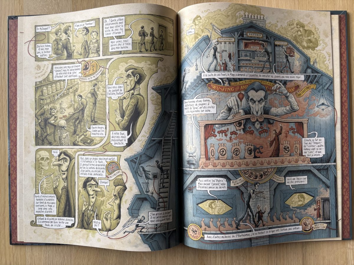 Le dessin hyper détaillé regorge de petits trésors à découvrir, d’images à voir par transparence, de pages à recourber pour divulguer des secrets. Un vrai plaisir de lecture, qui se double d’un jeu de piste et d’enquête, superbement réalisé. Le seul défaut de cette BD, c’est de devoir attendre le prochain tome !