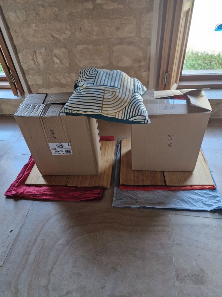 Après, il n’y a plus qu’à laisser secher. Ici ça a pris deux jours, et on a mis une presse artisanale dessus pour que ça soit bien plat.