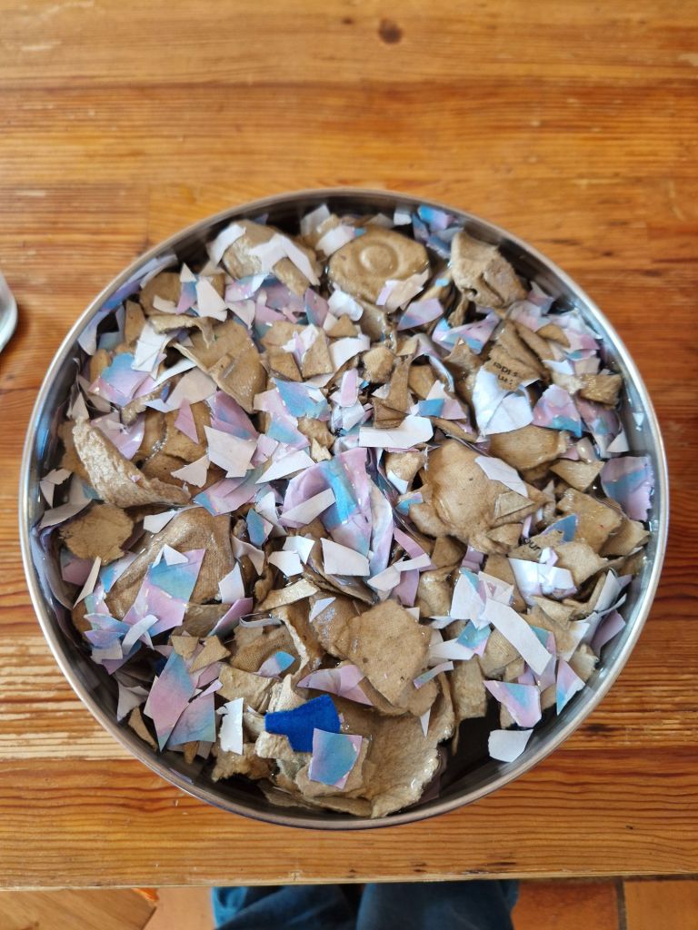 Étape 1 : découpe/déchire le papier en petits bouts et fais tremper deux bonnes heures.