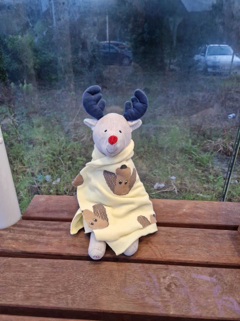 A l’entrée à la crèche, on nous a demandé un doudou. On en a pris un au pif, et apparemment elle l’a adopté.