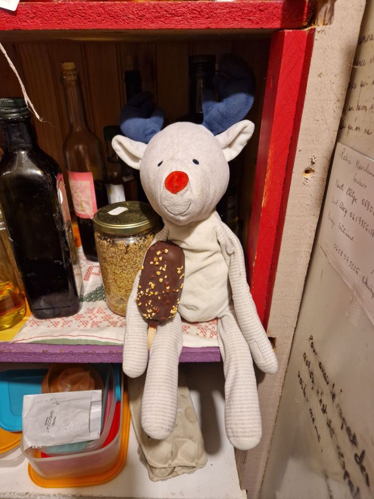 La Poupette a trouvé un des spare. Je m’en rappelle très bien (elle aussi). Ra-vie, elle a sauté partout et l’a direct adopté. Récemment elle m’en a reparlé « il jouait caché dans la grande armoire de la salle de jeux et après on l’a pris ».