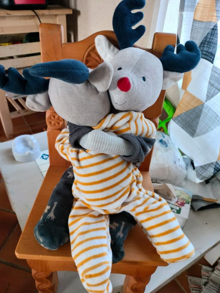 Et puis un jour, je sais plus, elle devait avoir 18 mois, Doudou a été adoubé. C’est le tout premier qu’on nous a offert. Il était dans son berceau en néonat. Et c’est celui là qu’elle a finalement adopté.