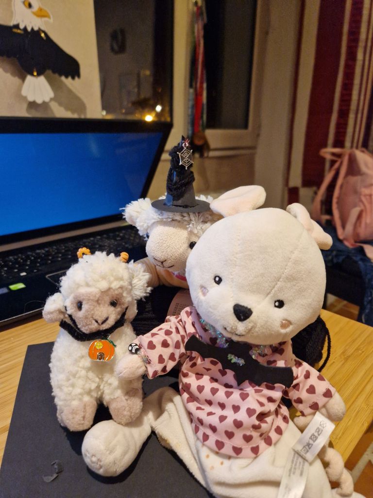 Lapin blanc, Mouton et Ptit agneau, dans leurs costumes d’Halloween. Photo personnelle.